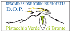 Il logo d'identificazione è rappresentato dalla dicitura DENOMINAZIONE D'ORIGINE PROTETTA D.O.P., dalla sottostante raffigurazione del vulcano Etna, dal pistacchio e dalla sottostante scritta Pistacchio Verde di Bronte.